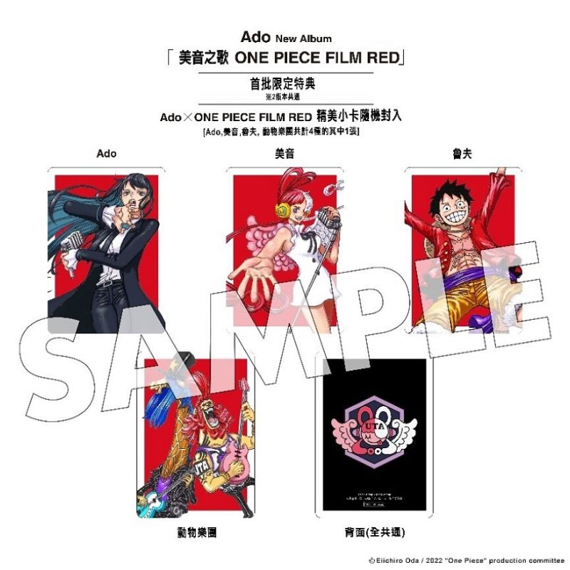 ※4種的小卡種類:Ado、美音、魯夫、動物樂團