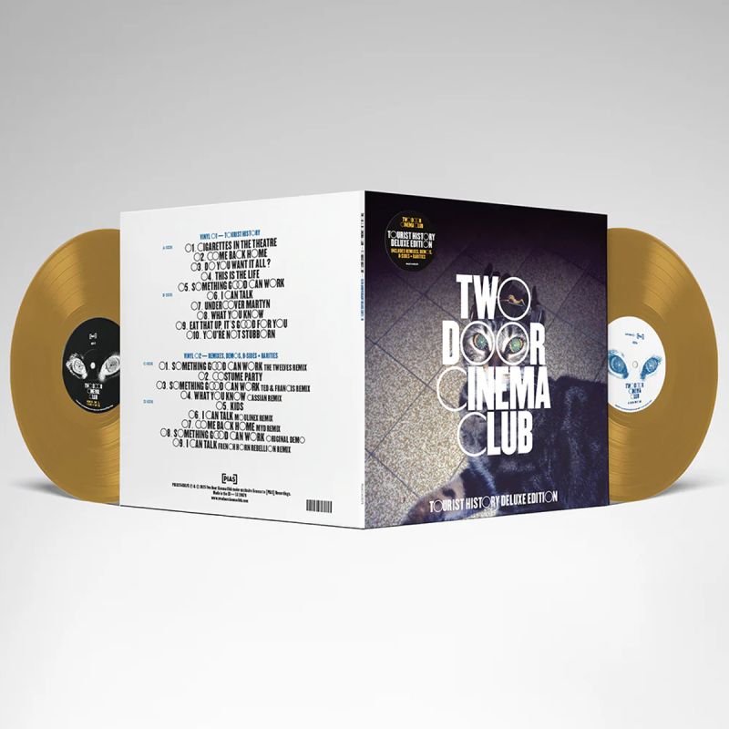 為慶祝里程碑式的首張專輯《Tourist History》發行 15 週年,Two Door Cinema Club 推出全新的 2025 年限量紀念版雙黑膠。此版本以 140g 金色膠片壓製,並以 豪華 Gatefold 開合式封套呈現,隨附 12 吋收藏級插頁,是粉絲與黑膠收藏家不可錯過的經典復刻。