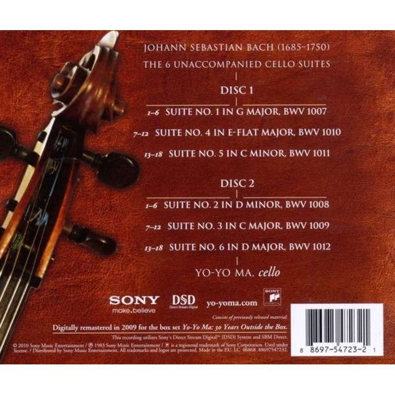 巴哈的六首無伴奏大提琴組曲,是音樂史的一個奇異現象,在於他的時代,大提琴還是項爭論中的樂器,而選擇它寫作獨奏的樂器,則更是大膽的嘗試;在他的時代或或早,有許多作曲家也曾嘗試寫過提琴家族的演奏作品,這些作品,都在樂曲的舖陳和和聲特性上受到限制,如何展現複旋律之美,是這個時代美的準則,這就是巴哈創作此六首作品難度之所在。對於提琴家族,大提琴家尤甚,同時驅動兩條弦以上來進行對位弦律是不可能做到的,可是,如何藉著單弦律的進行,暗示對位弦律的存在,則在巴哈的大、小提琴無伴奏組曲中明白昭示給後人。馬友友在此六曲中的演奏,自面世以來即廣為人注目,這些他自小親近的作品,對思考空間自由的馬友友而言,尋找樂曲的啟發性是比遵守傳統溫雅風格重要得,這也是此版之所以為人稱道之處。