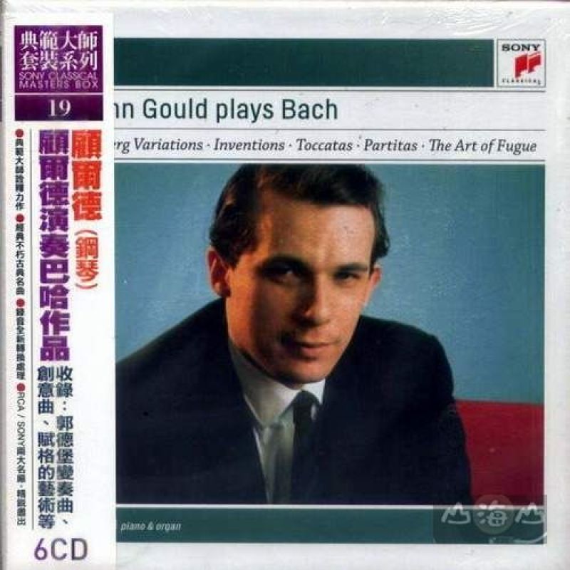 《典範大師套裝系列19》 顧爾德(鋼琴) / 顧爾德演奏巴哈作品 (6CD) Glenn Gould / Glenn Gould plays Bach (6CD) 鋼琴家顧爾德(Glenn Gould)是個傳奇中的傳奇,不同於一般傳統古典演奏者的,顧爾德至今依舊令人津津樂道的原因可以從幾各層面上來歸咎,一是顧爾德不同於一般人的奇異行 事風格,例如他在大熱天依舊穿著大衣戴手套;他坐在鋼琴前演奏時,椅子總是調得特別的低,甚至在彈奏時不時發出隨著旋律哼唱的呢喃;他離群索居、但一時興 來會在半夜跟友人通電話講上好幾個小時。其二是他的詮釋,尤其是巴哈作品,幾乎崩解了前人的觀點,發展出自成一格獨有的風格,當然這樣的詮釋是令人驚豔也 建構在一套架構中。其三是他對現場演出衰微、錄音室必興盛的理論,當然這樣的論點至今仍待商榷,但也因而造就了他當紅時期退出舞台演出,只在錄音室留下作 品。林林總總的事蹟造就了音樂史上最不可思議的「顧爾德現象」,他成了電影導演探討的主角、精神家哲學家出書探究的主題,而最直接的就是他的錄音專輯也成 了人類最珍貴的瑰寶。 這套他演奏的巴哈作品更是絕對要收藏的專輯。顧爾德的巴哈是二十世紀演奏風格最具創意與突破性的鋼琴家,他詮釋的巴哈屏除了傳統沉悶老舊的氣息,讓音樂找 到直接進入人們腦波的韻律感與節奏感。尤其是著名的郭德堡變奏曲,他分別錄製了兩個版本 1955年&1981年,此套裝收錄了1955年版本,另外還有創意曲、觸技曲以及賦格的藝術等。