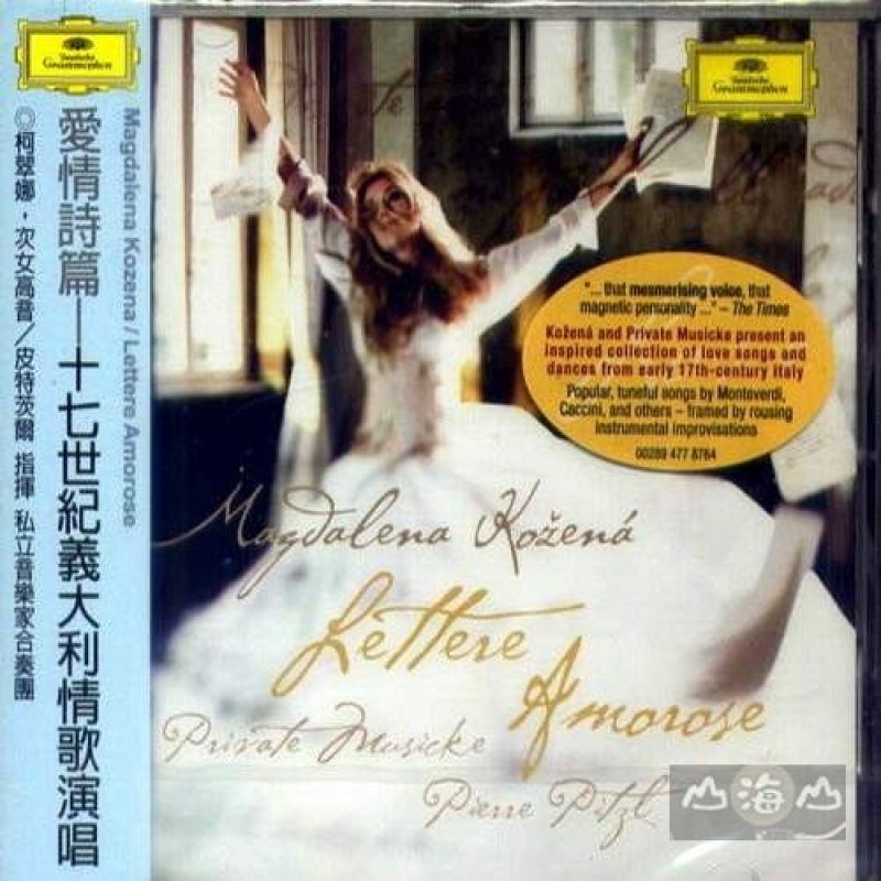 愛情詩篇 / 十七世紀義大利情歌演唱 Magdalena Kozena / Lettere Amorose ⊙柯翠娜,次女高音/皮特茨爾指揮私立音樂家合奏團 「愛情詩篇」是一張以早期巴洛克,也就是約十七世紀的義大利情歌為主軸的專輯。除了展現當時音樂的即興本質,也表現出次女高音柯翠娜音樂性的另外一面。 從幼年在捷克布爾諾參加合唱團開始,柯翠娜就經常演唱這些曲子。「我發現這些簡單的曲子非常迷人,」柯翠娜說:「而簡單的歌曲也可以詮釋得十分深刻。這些 音樂能對那些自認不是古典音樂專家的人說話。這些音樂來自古典與流行音樂還沒有被劃分開來的時代,它們只不過就是每個人都可以聽、都能唱的音樂。」為了表 現與先前巴洛克專輯完全不同的風情,柯翠娜選擇了與德國的私立音樂家合奏團合作。這是一個由六把弦樂器以及打擊樂組成的著名小型巴洛克音樂演奏團體,而詮 釋的基調就是每一名音樂家都可以自由運用自己的樂器,自行決定如何演奏。「錄音以前,我們在音樂會上試著以不同的方法演奏,這樣的自由程度,在古典音樂裡 已經不復見。」 在這些簡單的哀歌到歡快的舞曲音樂裡,柯翠娜釋放了她的聲音以及表現能力,精細的傳達出隱含在音樂與歌詞之間的細節。
