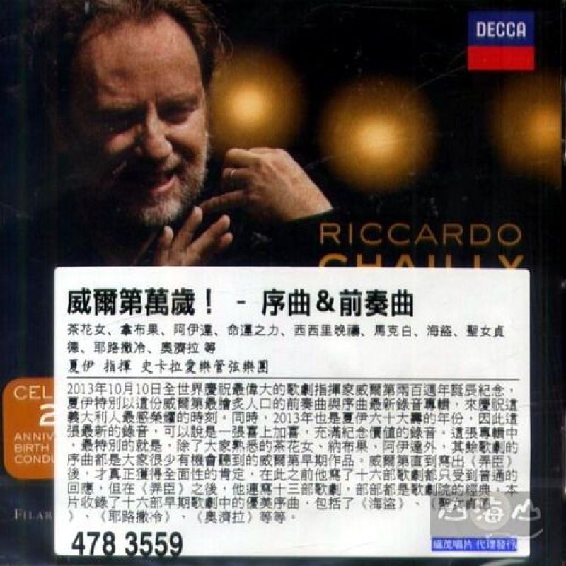 2013年10月10日全世界慶祝最偉大的歌劇作曲家威爾第兩百週年誕辰紀念,義大利指揮家夏伊特別以這份威爾第最膾炙人口的前奏曲與序曲最新錄音專輯,來慶祝這義大利人最感榮耀的時刻。同時2013也是夏伊六十大壽的年份,因此這張最新專輯,可以說是一張喜上加喜,充滿紀念價值的錄音。 夏伊這張專輯中並沒有指揮他擔任總監的萊比錫布商大廈管弦樂團,而是回到家鄉米蘭,指揮義大利歌劇界最高殿堂的米蘭史卡拉歌劇院愛樂。這個樂團是威爾第生前親自指揮演出過多部歌劇的樂團,夏伊之前也和他們合作過多張羅西尼序曲和弄臣等劇的錄音。 夏伊是在阿巴多、朱里尼之後,義大利指揮界地位和聲望最高的指揮家,但他長年在德語地區發展,近期更憑貝多芬、巴哈和馬勒、布魯克納錄音揚名國際,常讓人忽略他原本也是一位義大利歌劇的指揮。這份紀念錄音,讓我們再度聽到他在自己最親切的音樂裡的放鬆和親切感。 這張專輯中最特別的就是,除了大家熟悉的茶花女、納布果、阿伊達外,其餘歌劇的序曲都是大家很少有機會聽到的威爾第早期作品。威爾第直到寫出《弄臣》後,才真正獲得全面性的肯定,在此之前他寫了十六部歌劇都只受到普通的回應,但在《弄臣》之後,他連寫十三部歌劇,部部都是歌劇院的經典。本片收錄了十六部早期歌劇中的優美序曲,包括了《海盜》、《聖女貞德》、《耶路撒冷》、《奧濟拉》等等。