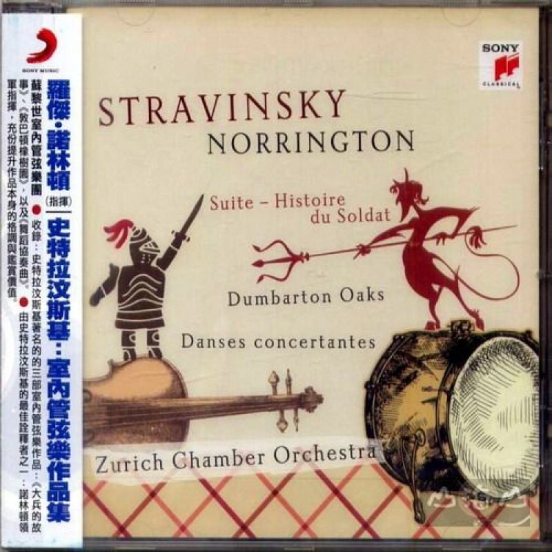 羅傑‧諾林頓 (指揮) Sir Roger Norrington 蘇黎世室內管弦樂團Zurich Chamber Orchestra 收錄:史特拉汶斯基著名的的三部室內管弦樂作品:《大兵的故事》、《敦巴頓橡樹園》,以及《舞蹈協奏曲》。 由史特拉汶斯基的最佳詮釋者之一:諾林頓領軍指揮,充份提升作品本身的格調與鑑賞價值。 史特拉汶斯基是指揮諾林頓(Sir Roger Norrington)最鍾愛的作曲家之一,因而策劃完成這張專輯的錄音。 《大兵的故事》(L’Histoire du Soldat/The Soldier’s Tale)是史特拉汶斯基主要的作品,完成於定居瑞士的Clarnes期間(1910-1920),因此諾林頓一直想要錄製這部作品。創作於1918年的《大兵的故事》融合了朗讀、演奏與舞蹈,描述一位士兵以小提琴與魔鬼交換一本可以預測未來經濟狀況的書。作品由器樂七重奏演奏,並包含三位演員與一位舞者。之後改編為音樂會演奏用的器樂組曲。 史特拉汶斯基的《敦巴頓橡樹園》是新古典主義的代表作之一,受橡樹園主人的委託,創作於1937年,原是為十五件樂器所寫的巴洛克式協奏曲,後來由作曲者親自改編為雙鋼琴協奏曲。(註:敦巴頓橡樹園位於華盛頓哥倫比亞特區市郊,建於1920年,現為圖書館。1944年,美、英、蘇聯和中國在此商討聯合國的創立。) 《舞蹈協奏曲》是受指揮家威納‧楊森(Werner Janssen)的委託,創作於1940年,這是他在美國創作的第一部大型管弦樂作品。樂曲由五個連續演奏的樂章所構成,是史特拉汶斯基最慧黠迷人的作品。 2012年諾林頓由中國籍指揮湯沐海的手中接下了蘇黎世室內管弦樂團。由於專研古樂演出長達三十年,因此他的指揮風格傾向於清晰與自然。他認為:「二十世紀的管弦樂演奏已經被多愁善感的揉弦變本加厲的『豪華』和浮誇,弄得含糊不清、華麗不實,音樂已經失去應有的清晰明瞭與自然質樸」。他的指揮提升了作品本身的格調與鑑賞價值,讓作品不再只是音符與樂器的組成物而已,是一份非常具有代表性的詮釋版本。