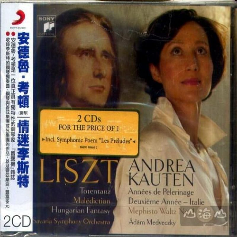 DISK 1 CD 1. Totentanz - Paraphrase on 〞Dies Irae〞 for Piano and Orchestra, S. 126死之舞變奏曲—末日經 2. Malédiction for Piano and String Orchestra, S. 121 惡咒 3. Les Préludes - Symphonic Poem No. 3, S. 97前奏曲 第三號交響詩 4. Hungarian Fantasy (Fantasie über ungarische Volksmelodien) for Piano and Orchestra, S. 123匈牙 利幻想曲 S.123,為鋼琴與管弦樂團 DISK 2 CD 1. Mephisto Waltz No. 1, The Dance in the Village Inn, for Piano solo, S.514第一號梅菲斯特圓舞曲 2. I. Sposalizio (a painting by Raphael) 婚禮 3. II. Il penseroso (a statue by Michelangelo沉思的人 4. III. Canzonetta del Salvator Rosa薩爾瓦多‧羅莎的短歌 5. IV. Sonetto 47 del Petrarca佩特拉卡的短詩第四七號 6. V. Sonetto 104 del Petrarca佩特拉卡的短詩第一○四號 7. VI. Sonetto 123 del Petrarca佩特拉卡的短詩第一二三號 8. VII. Après une lecture de Dante: Fantasia quasi Sonata但丁讀後 奏鳴曲風的幻想曲 9. Hungarian Rhapsody No. 14 in F minor, S. 244 f小調匈牙利狂想曲