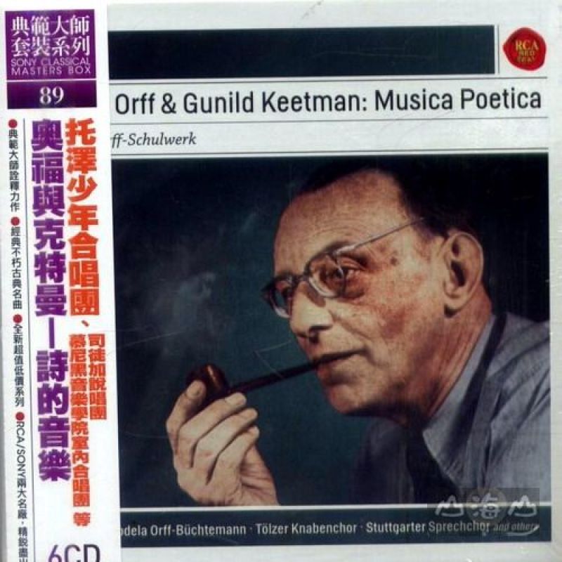 托澤少年合唱團 Tölzer Knabenchor 司徒加說唱團 Stuttgarter Sprechchor 慕尼黑音樂學院室內合唱團Munich Academy of Music Chamber Choir...等 卡爾.奧福最大成就是其所研發的音樂教學法 - 奧福教學法。 巴伐利亞電台委託製作的兒童教學節目整理成為五大冊名為「兒童音樂」,以此為素材,完成「詩的音樂」之錄音。 奧福教學法的重要音樂教材,更是音樂史上重要的歷史錄音記錄。 卡爾.奧福(1895 -1982)是二十世紀著名的作曲家及音樂教育家,最大成就是其所研發的音樂教學法-奧福教學法(Orff Approach)。生於慕尼黑,就學於慕尼黑學院。1924年,與舞蹈家歌特(Dorothee Günther)創辦歌特學校(Günther Schule),從此開始他長達半個世紀的音樂教育事業。 歌特學校剛開始時只招收18至22歲的女生,後來因為巴伐利亞電台邀請奧福為兒童做一系列的廣播節目,才開始了兒童音樂教育的研究。1948年奧福與克特曼(Gunild Keetman)使用二次世界大戰後學校遺留的一些簡單樂器,與8 ~12歲的小朋友做一系列的教學,開啟奧夫兒童音樂教育。 從與這些小朋友的互動中,奧福了解到兒童學習音樂應該從培養節奏感開始,再逐漸加入旋律、和聲等元素。他的教學法結合了音樂、律動、戲劇與說話於課程中,與兒童的遊戲內容相似,因此普遍受到各國音樂教育者的肯定。 巴伐利亞電台的廣播教學內容發表於1950-54年間,後來被整理成為五大冊名為「兒童音樂」(Orff-Schulwerk: Musik fur Kinder (Music for Children),並於1966年加上補充資料)。1963年至75年間,克特曼與奧福以「兒童音樂」的內容為材料,將其轉化為音樂錄音,並命名為「詩的音樂」(Musica Poetica),本專輯便是當年的錄音的完整呈現。這份錄音不僅是奧福教學法的重要教材,更是音樂史上重要的歷史錄音,具有難以忽視的經典價值。